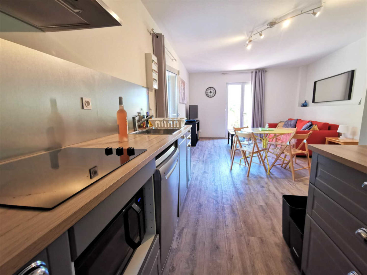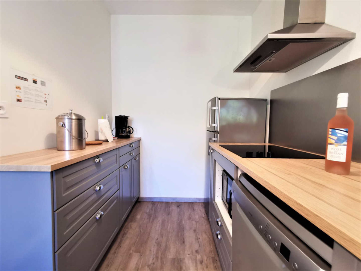 Le gîte » Le Cinsault » de 65m² est situé sur 2 niveaux et comprend au rez-de-chaussée une pièce à vivre ouverte sur la cuisine équipée ainsi que la salle d’eau et WC. A l’étage l’espace nuit avec une chambre avec 1 lit double et une chambre avec 2 lits simples.