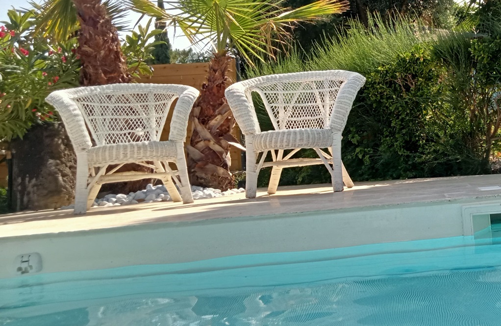 La piscine dispose de transats avec parasol. « Vous avez la possibilité de bronzer avec ou sans traces de maillots au bord de la piscine ».