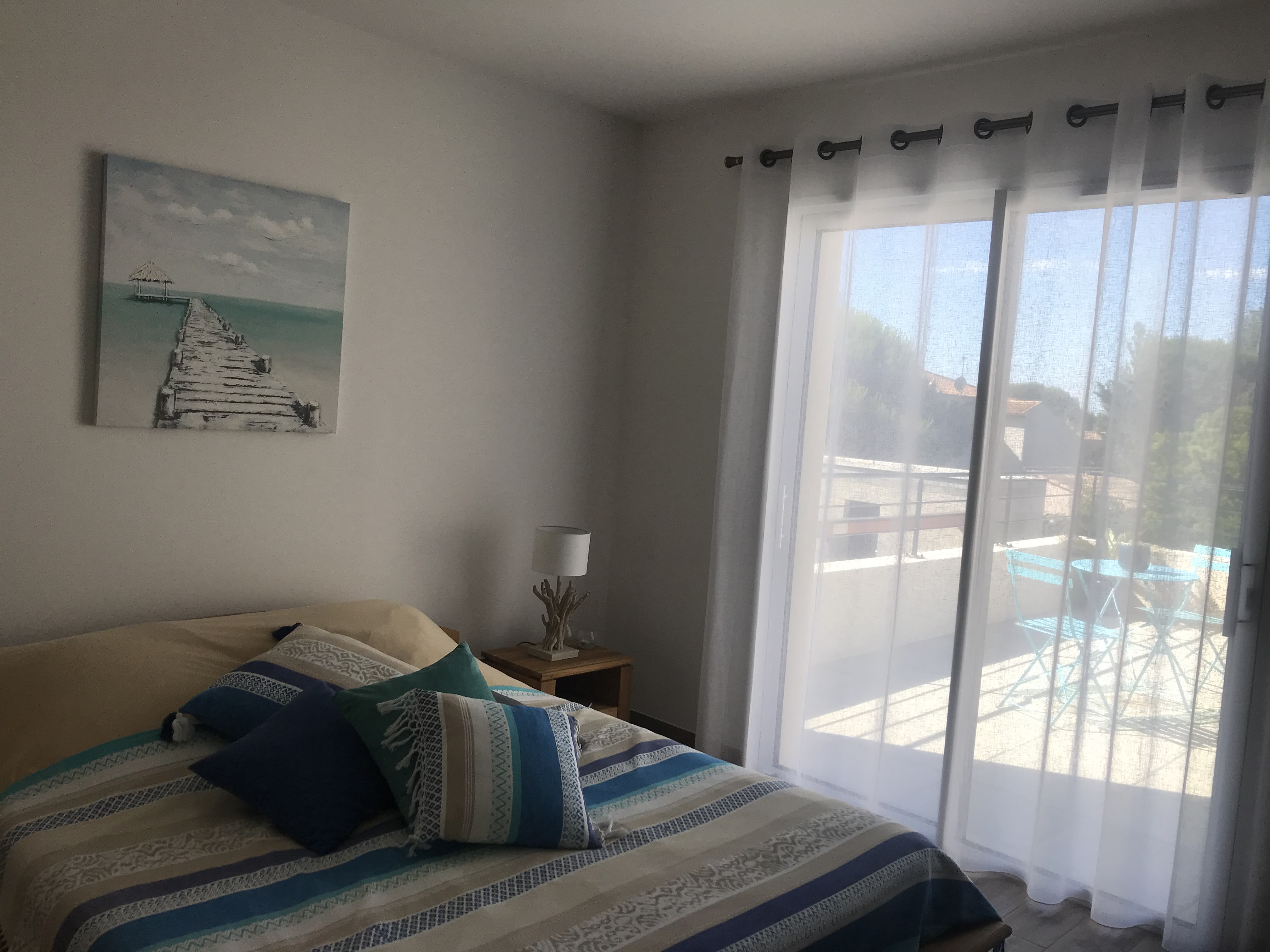 Un transfert depuis la gare ou l’aéroport de Béziers ou de Montpellier est possible sur demande. – Chambre double de 15m2 avec un lit en 160*200. Elle donne sur une terrasse et vue sur le jardin/piscine. La salle d’eau et les wc (séparés) se trouvent à côté de la chambre sur le même étage.