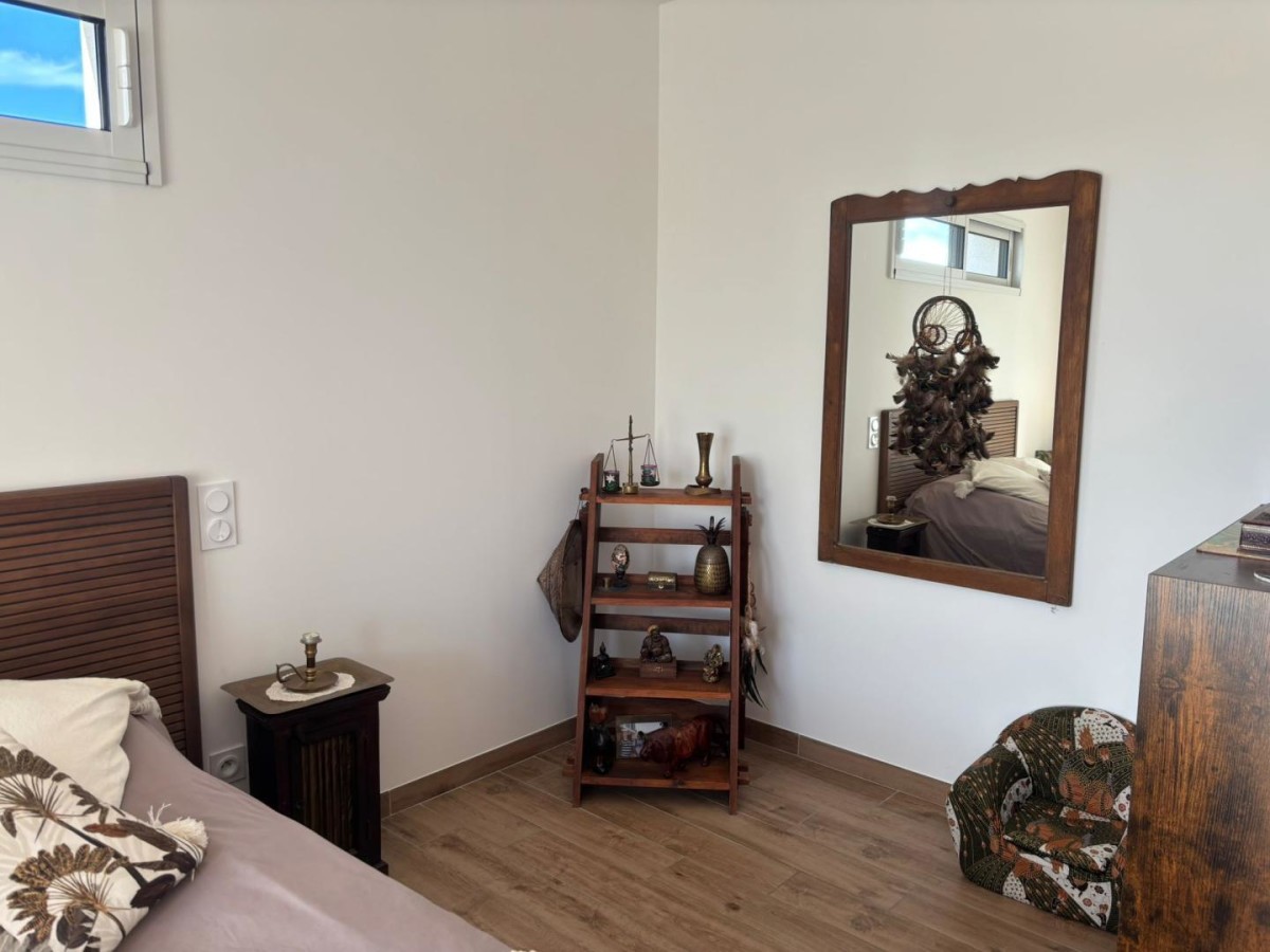 La chambre de style moderne et exotique est à l’étage de la maison des propriétaires. L’étage avec la chambre, la salle d’eau et les toilettes sont réservés aux vacanciers.