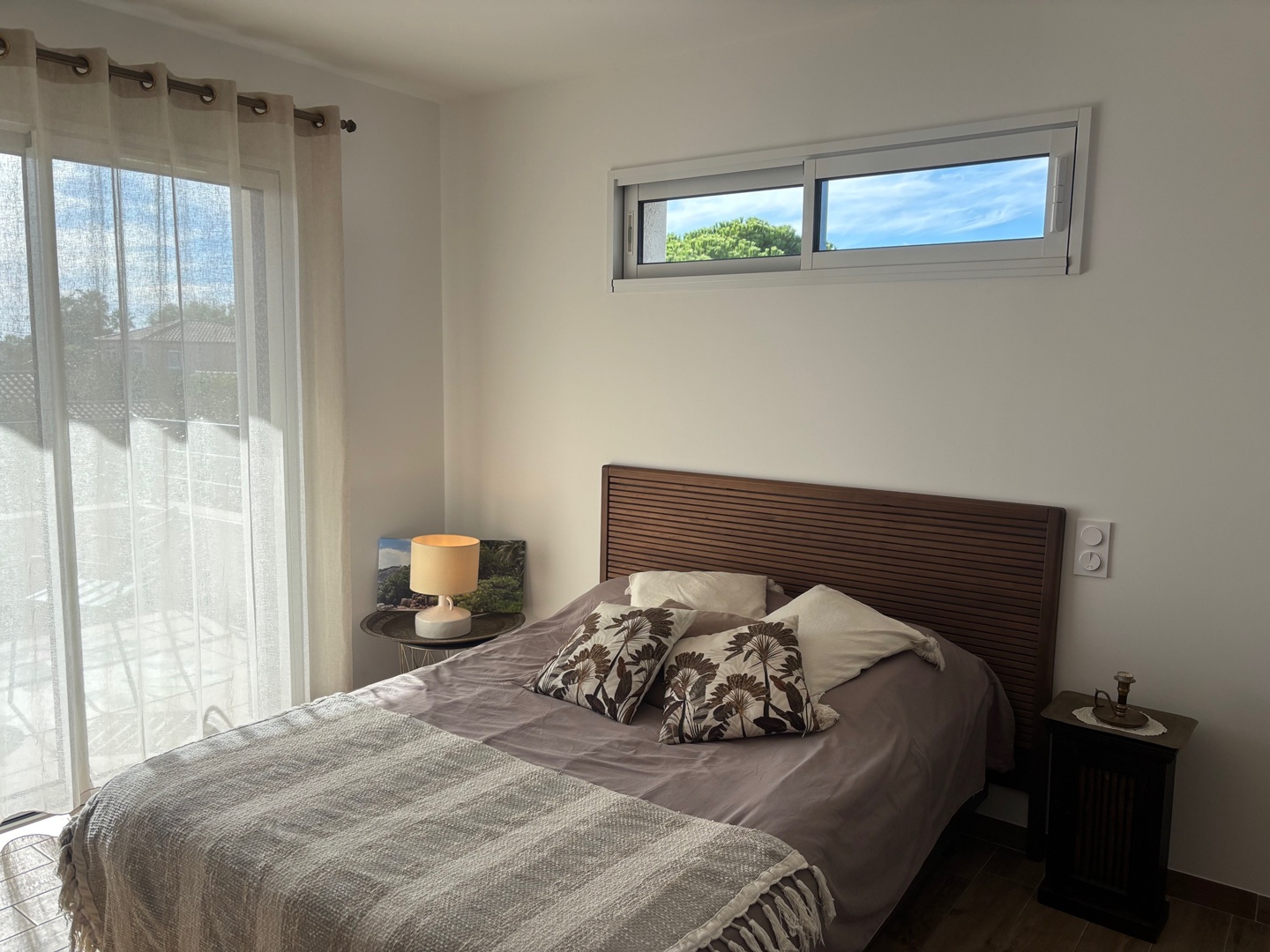 – La chambre proposée mesure 15m2 avec un lit en 160*200 et rangements. Climatisation réversible la nuit, selon conditions météo, accès direct sur une terrasse extérieure aménagée