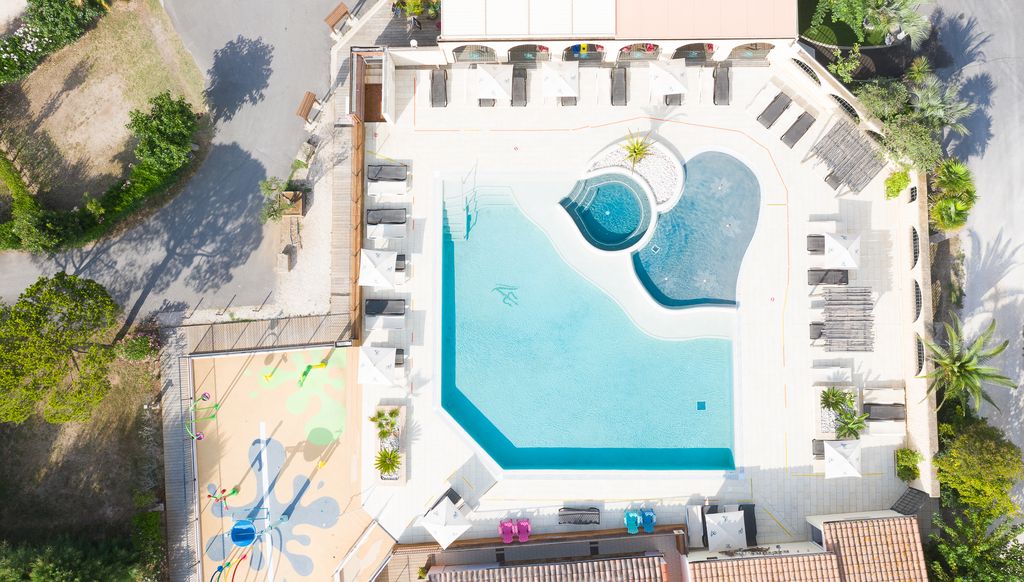 Accueil : Accueil de personnes en situation de handicap : accès piscine et commerces accessibles handicapés - Parking PMR à l'entrée - Cabines WC et douche accessibles