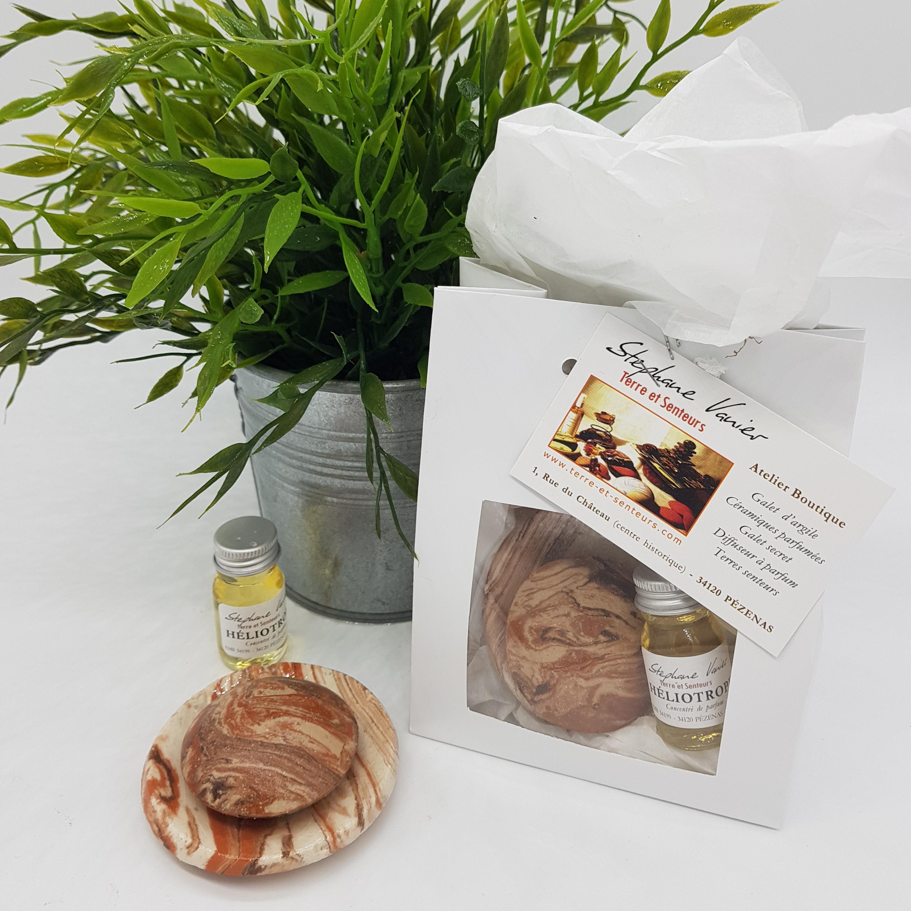 Terre à savon et galets parfumés de senteurs merveilleuses : héliotrope, ambre, fruits confits…