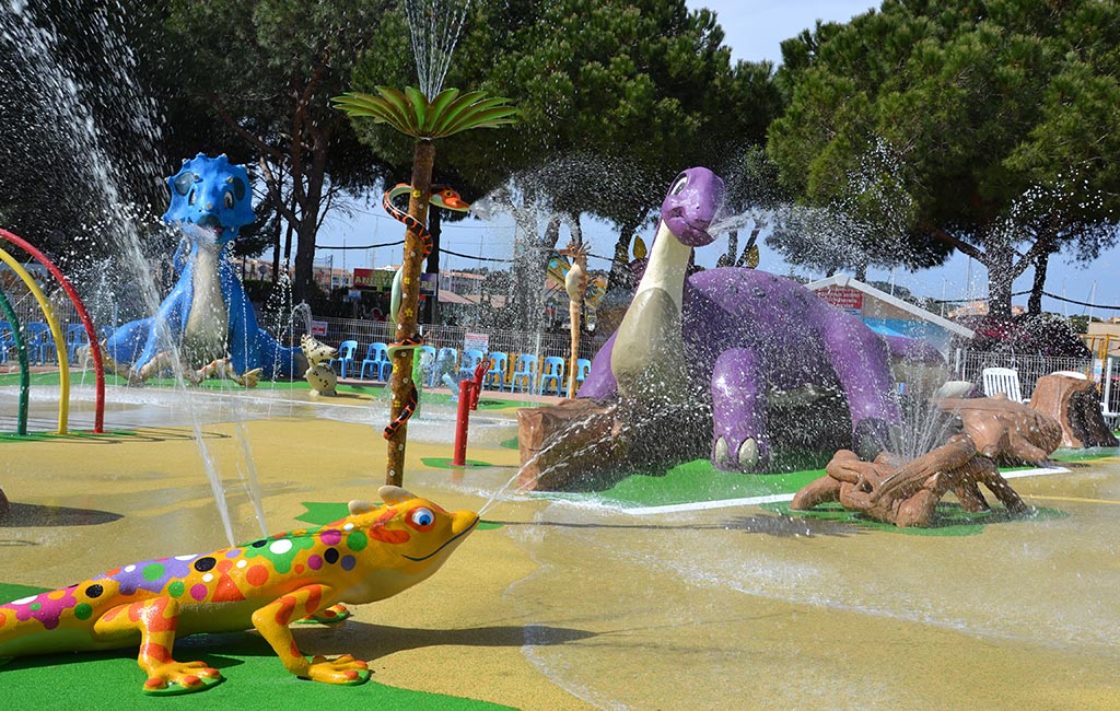 “Aqua Dino” : 500 m² de jeux d’eau dédiés aux enfants avec plages, jets d’eau, transats. Parc ombragé équipé de brumisateurs et aires de pique-nique.