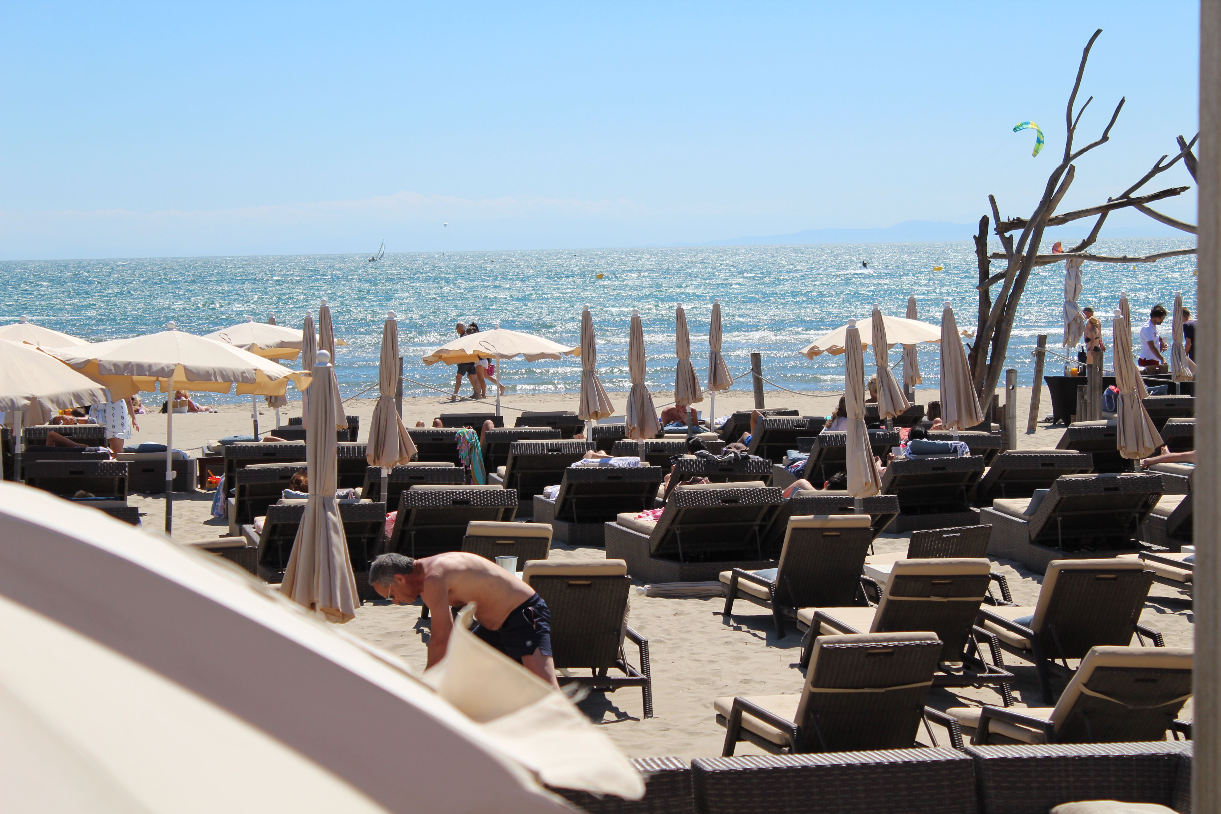 Paillote et restaurant de plage proposant la location de matelas et parasols et une cuisine française des plus ensoleillées.