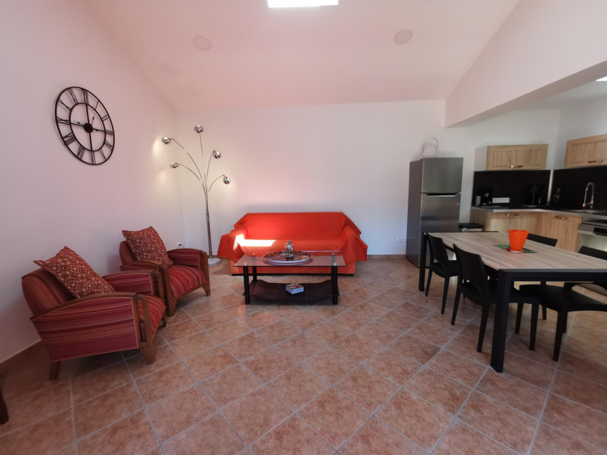 L’hébergement se compose de  2 chambres (1 lit double dans chaque chambre), 2 salles d’eau, 1 wc indépendant. Il comprend également une vaste pièce à vivre de 45 m² incluant cuisine-salon-séjour et ouvrant sur une terrasse exposée plein sud. Le gîte est climatisé et bénéficie d’un accès WIFI.