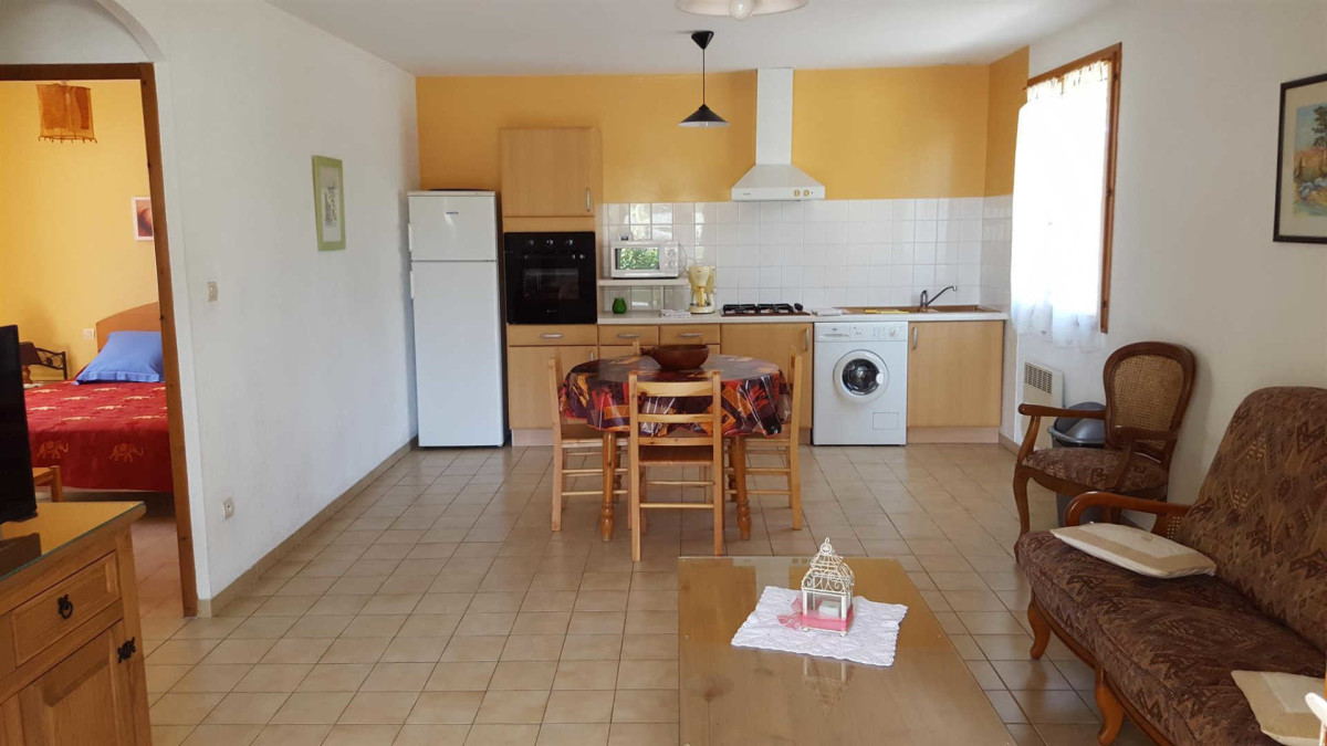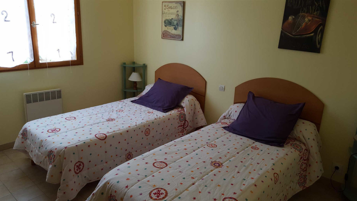 Cet hébergement comporte une salle de séjour/coin-cuisine (four, micro-ondes, cafetière à filtres) /coin-salon, une salle d’eau et WC séparés, une chambre double avec un lit en 160×200, et une autre chambre avec deux lits simples en 90×190.