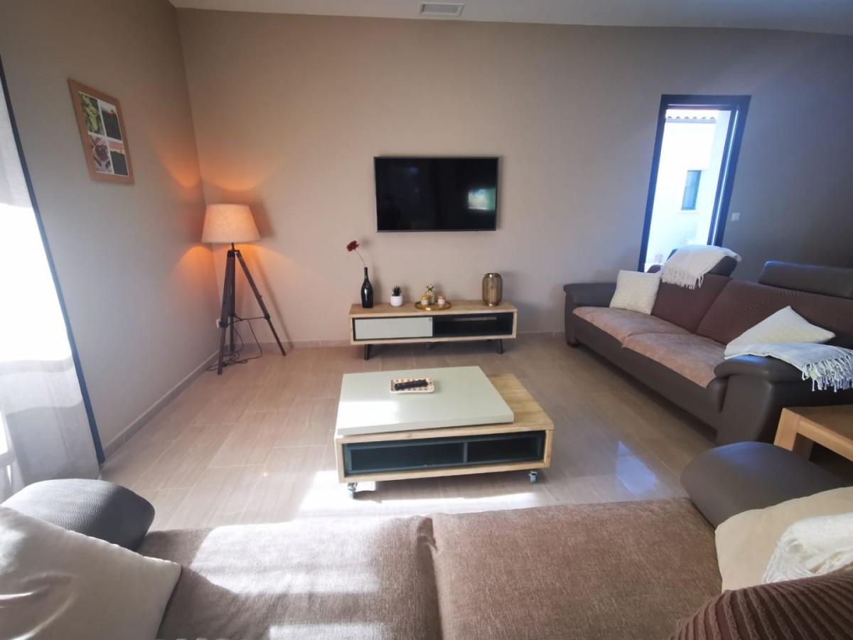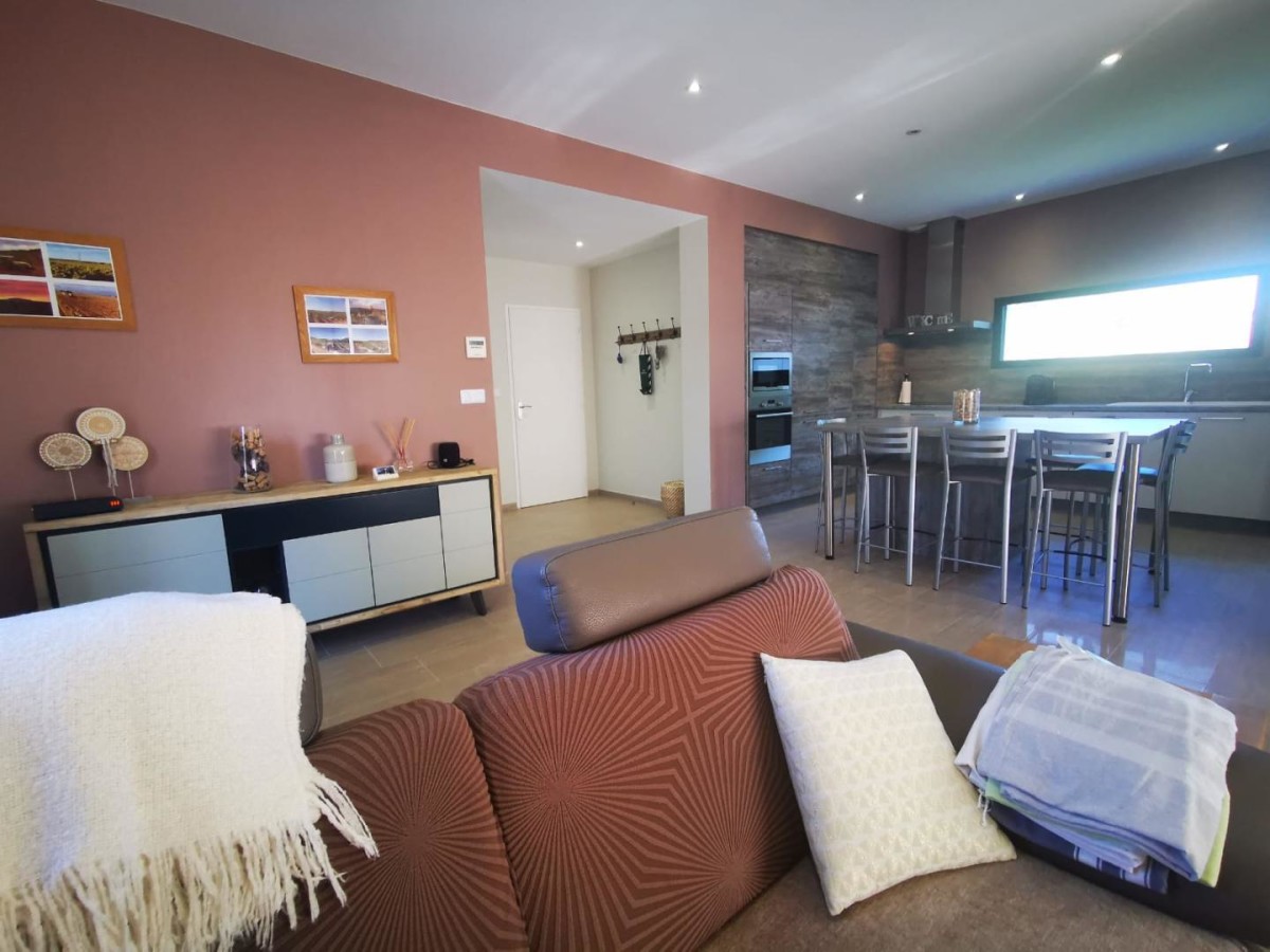 Entre Sète et Béziers, proche du centre du village, en bordure du vignoble, villa aménagée de plain-pied au rez de chaussée : pièce de jour spacieuse ouvrant sur un jardin clos de 500 m² sans vis à vis et une terrasse couverte