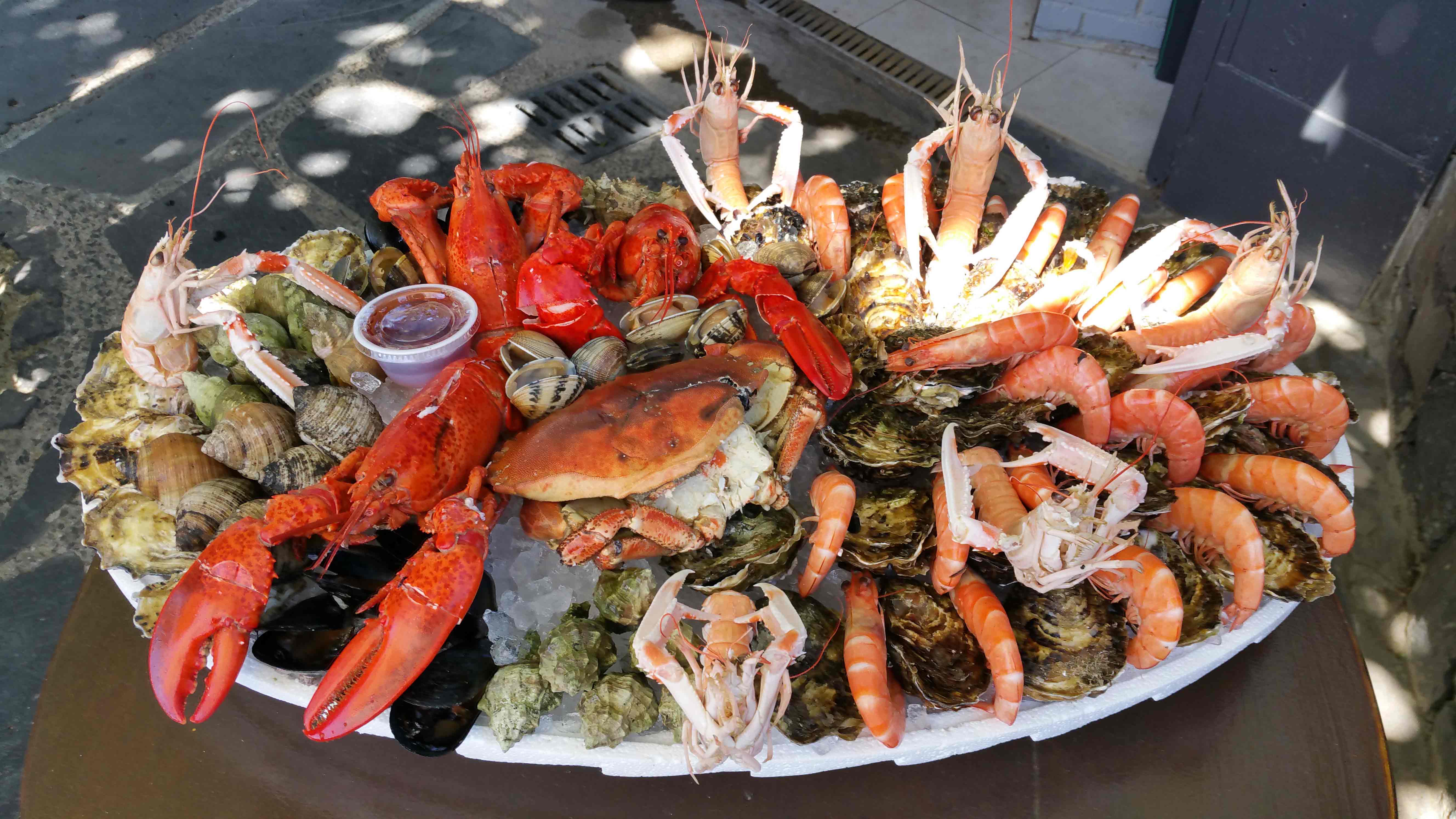 Composition de plateaux de fruits de mer à emporter ; vente au détail à emporter.
