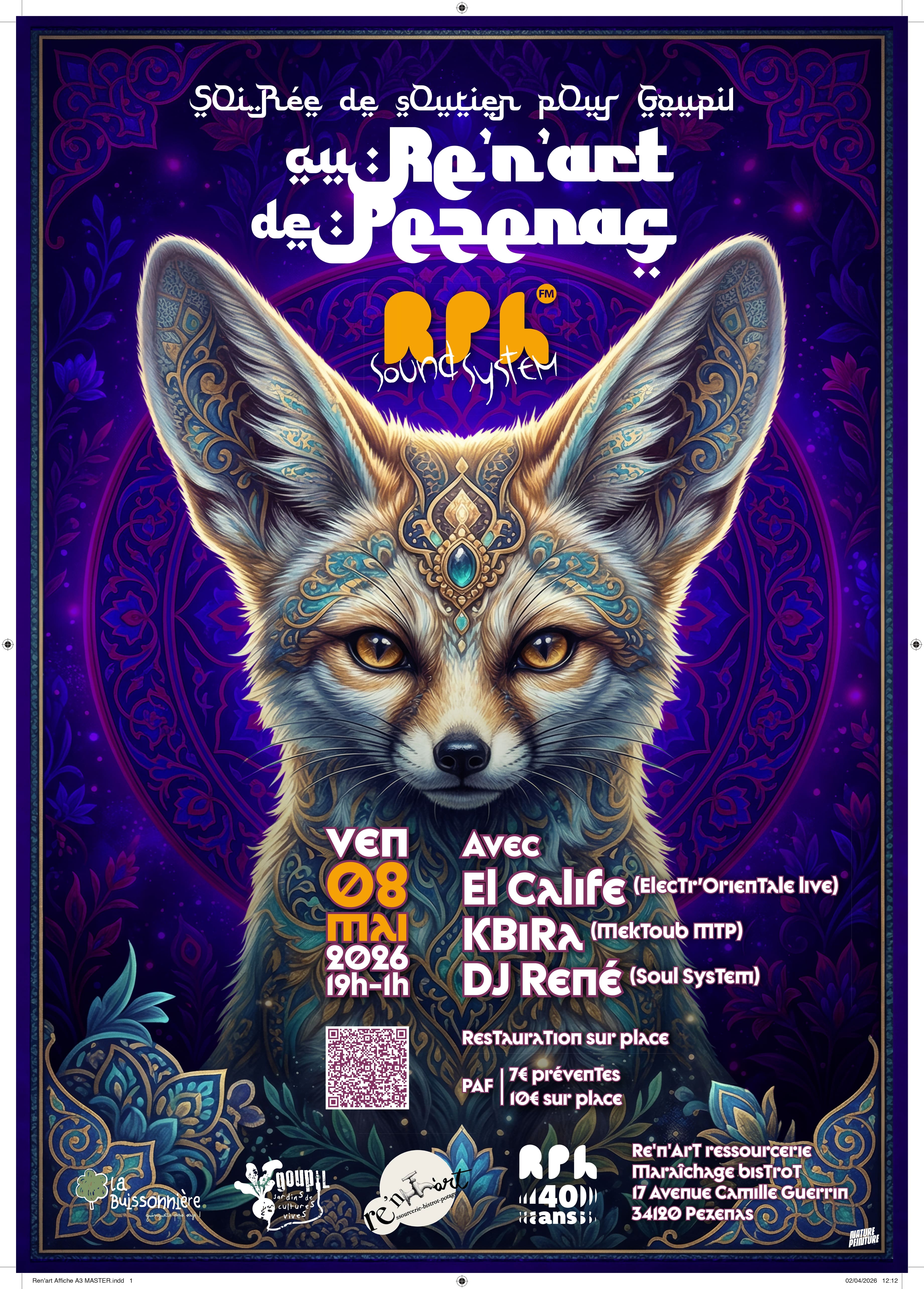 Le Vendredi 8 mai, de 19h à 1h, RPH Sound System revient faire vibrer la ressourcerie du Goupil au Re'n'art de Pézenas pour une soirée aux couleurs et saveurs de l'Orient !