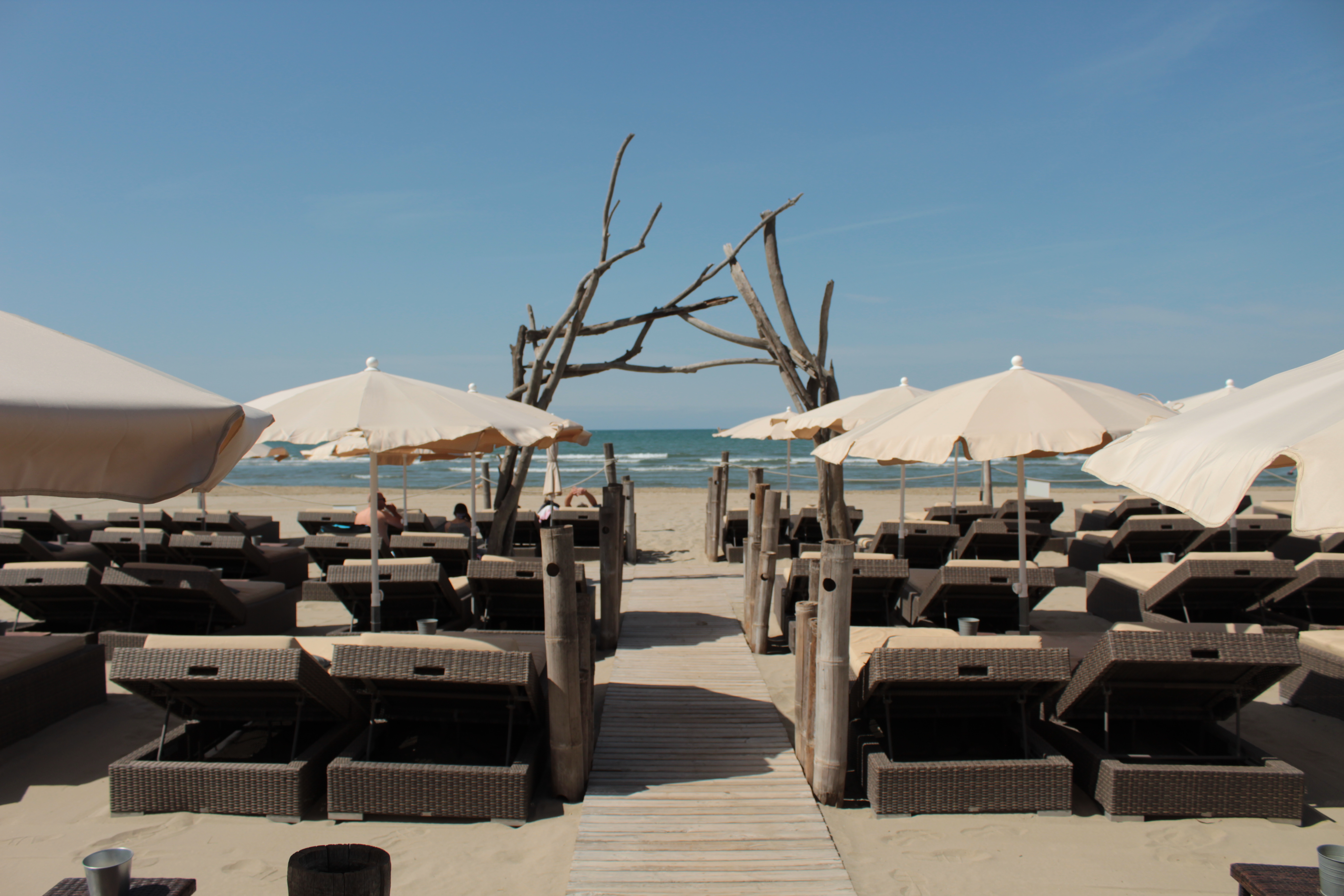 Paillote et restaurant de plage proposant la location de matelas et parasols et une cuisine française des plus ensoleillées.